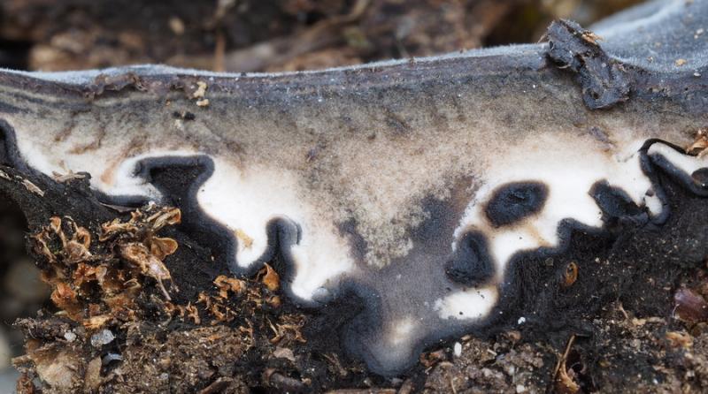 These 0.5 mm diam. acervuli were breaking through
