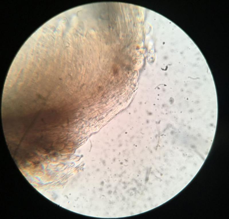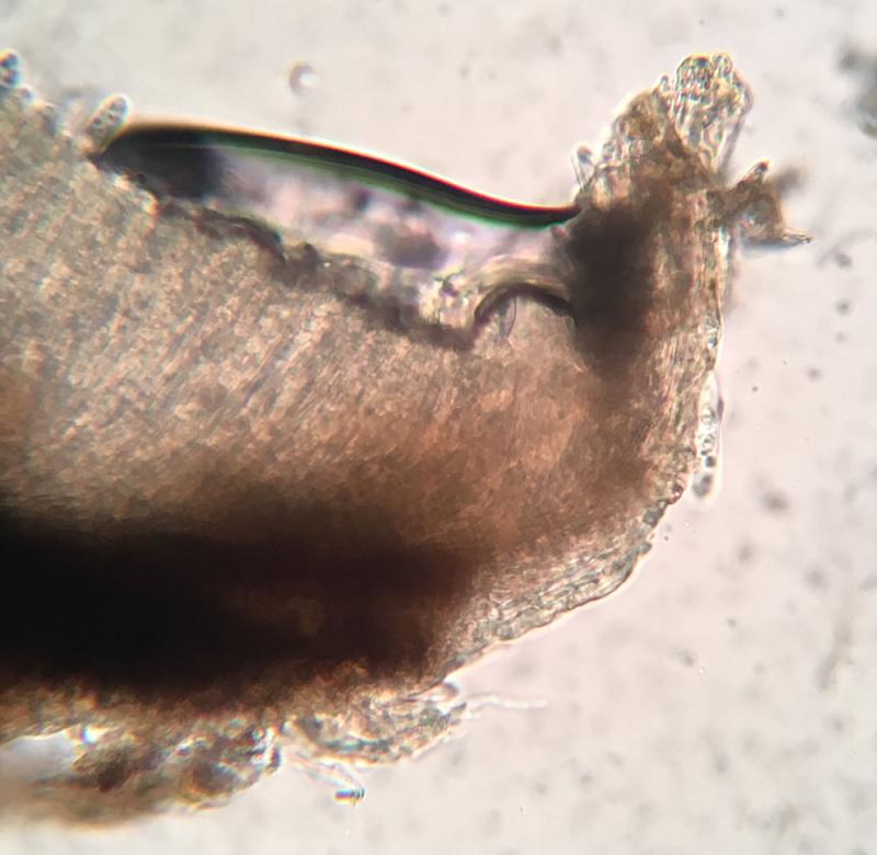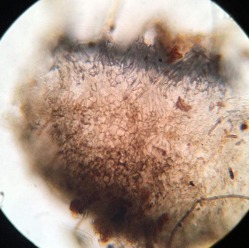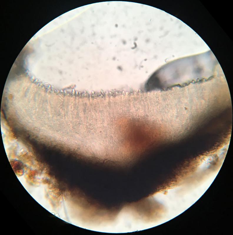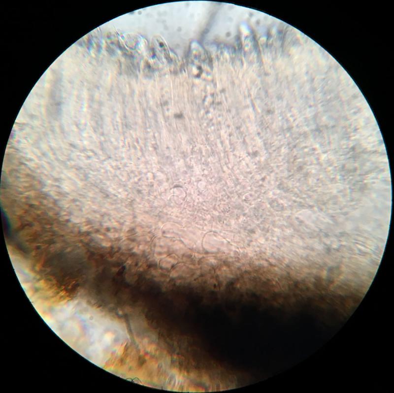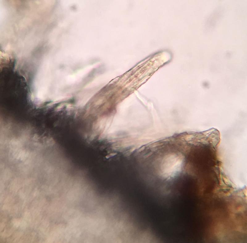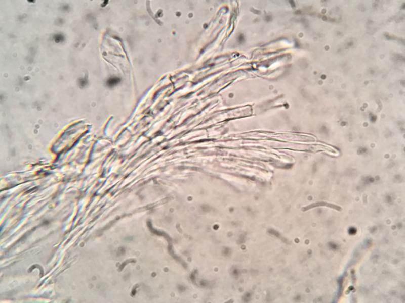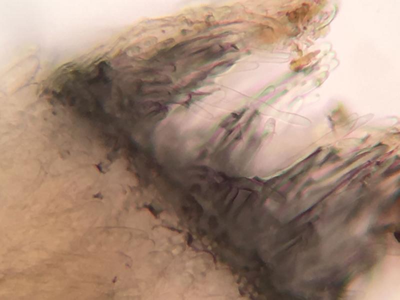 Ectal excipulum is brown with elements of textura globulosa/angularis. Hairs are septate, hyaline and tend to stick together in fascicles.