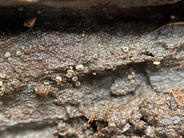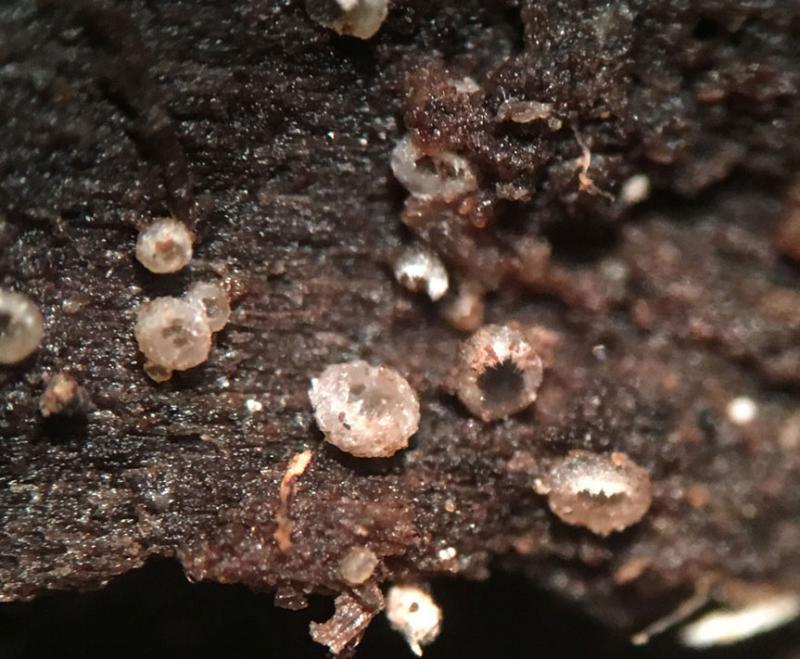 Once again I find myself at a complete loss... This asco was found earlier this week on partially submerged, very wet decorticated hardwood in New York City. The cups are not much larger than 0.5 mm, and fringed by glassy hyaline hairs which cluster in bundles. The color of the hymenium is a smoky gray.