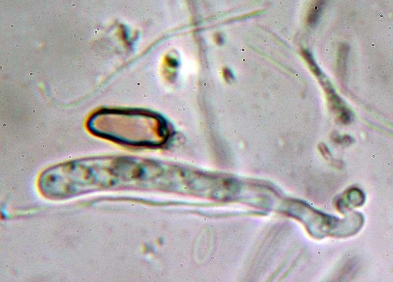 Orbilia of the eucalypti group. Brown spores are alien.