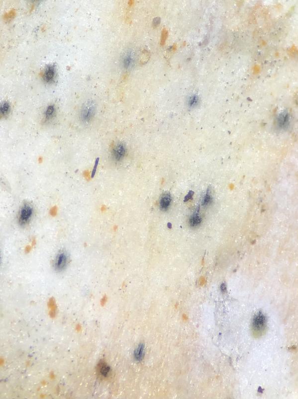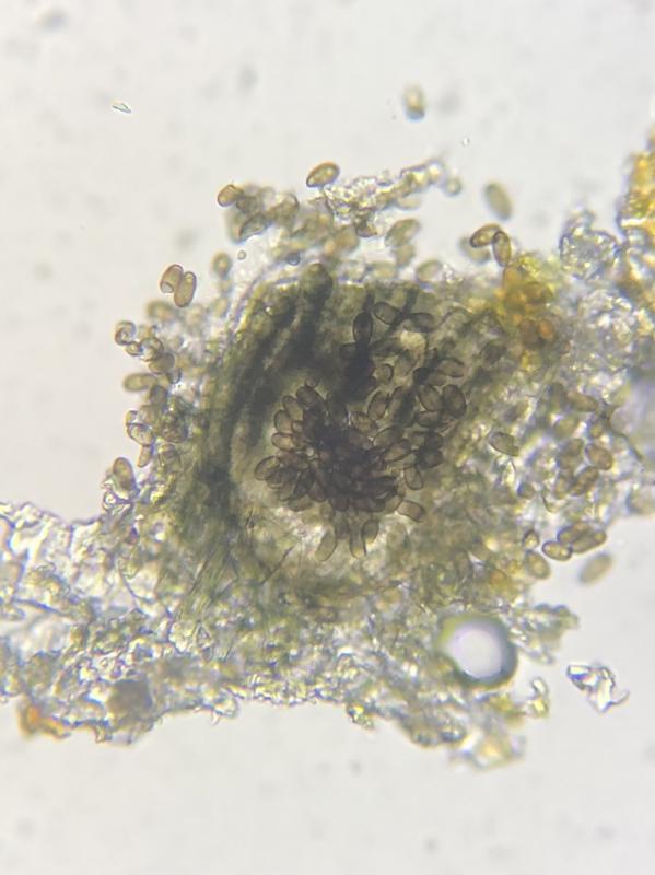 These 0.5 mm diam. acervuli were breaking through