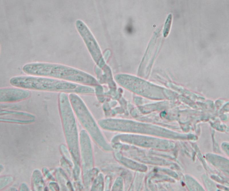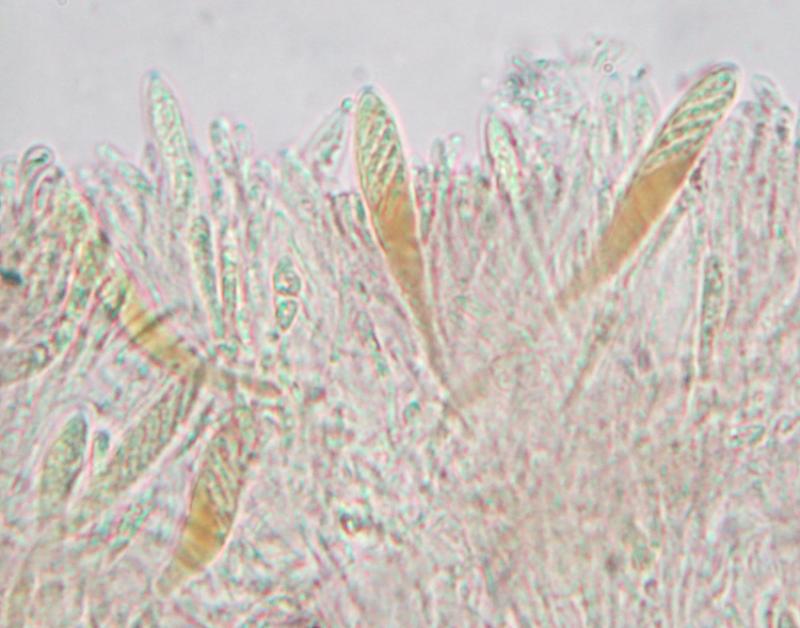 Asques d'en moyenne 35 microns, réaction iki positif dans le melzer, contenu coloré au lugol, spores fusiformes d'en moyenne 8.4 x 2.7 sans contenu notableÂ