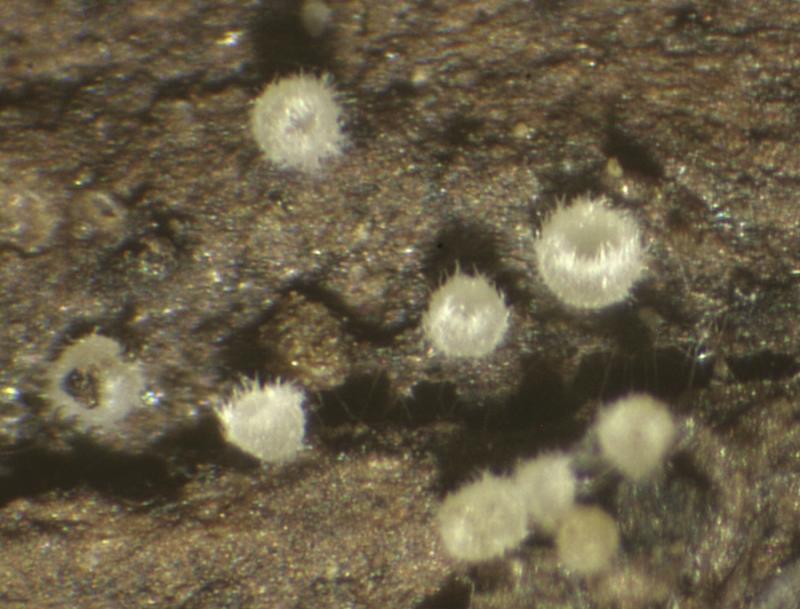 colonie de minuscules apothécies < au millimètre, nettement hirsutes