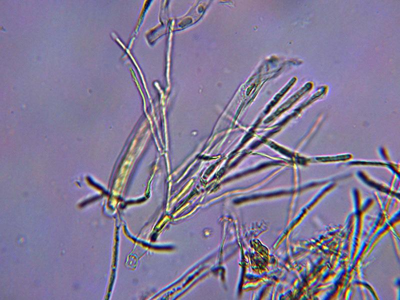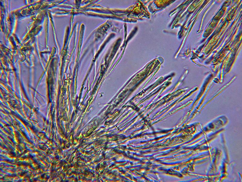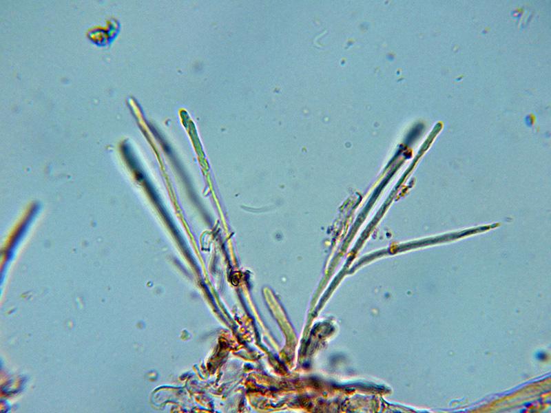 Hifas marginales cilÃndricas con los extremos fuertemente pigmentados.