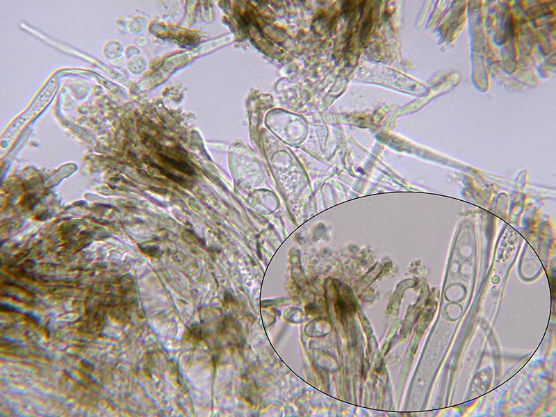 He recuperado el cono y después de varios nuevos estudios no he podido encontrar ni tan siquiera un solo conidio de Phragmotrichum chailletii, por lo que creo que es posible que mi hongo no tenga ninguna relación con el mismo, punto que por supuesto tampoco puedo asegurar.