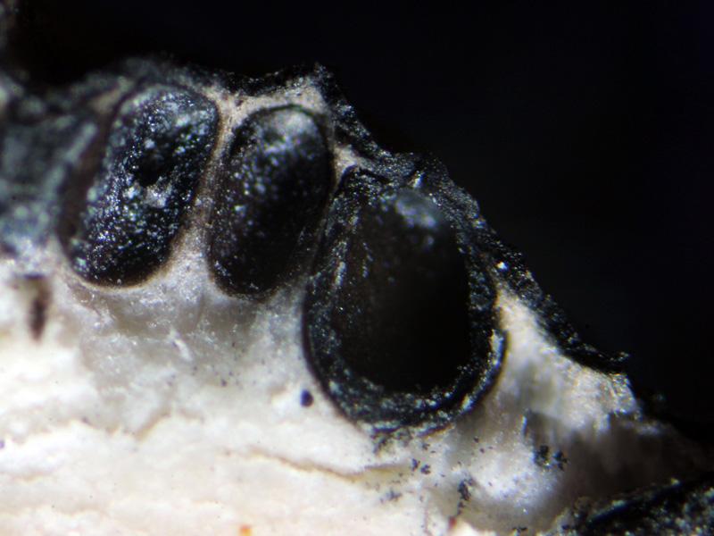 These 0.5 mm diam. acervuli were breaking through
