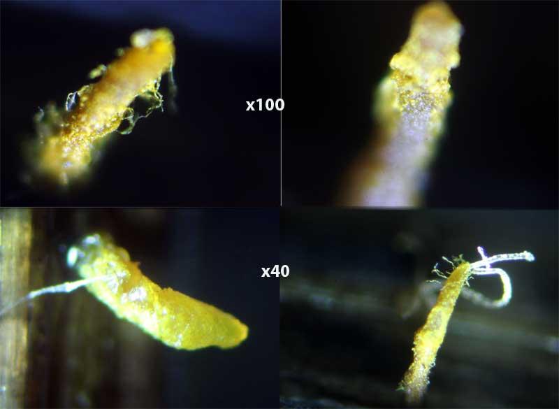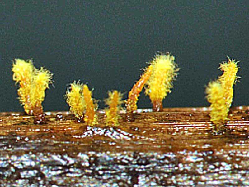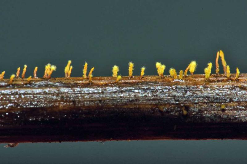 These 0.5 mm diam. acervuli were breaking through