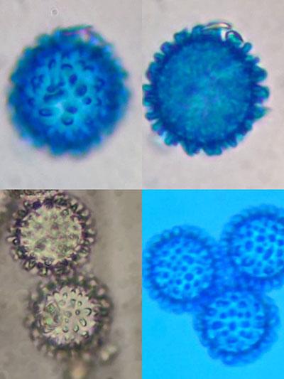 Spores globuleuses 18,3 X 18,6 µm à "epines" tronquées.