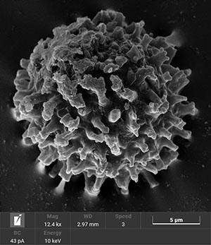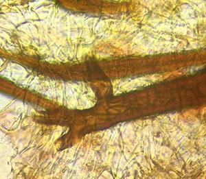Ces épines (2,5 µm x 1 µm) sont élargies au sommet et présentent plusieurs lobes (jusqu'à 4 ), et peuvent faire penser à des podes.