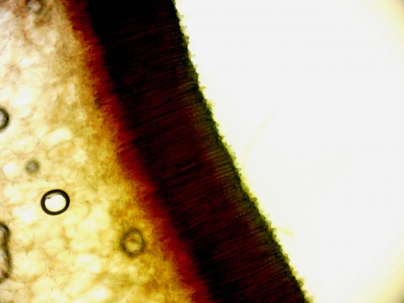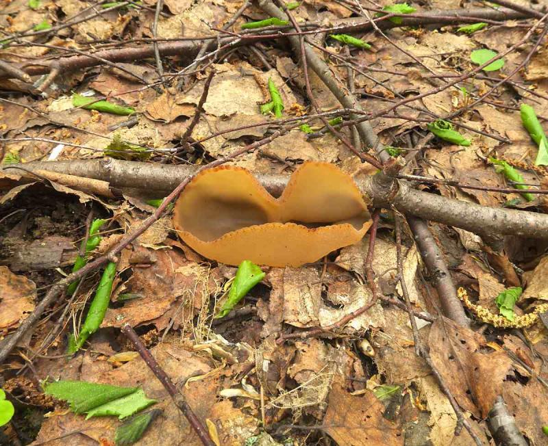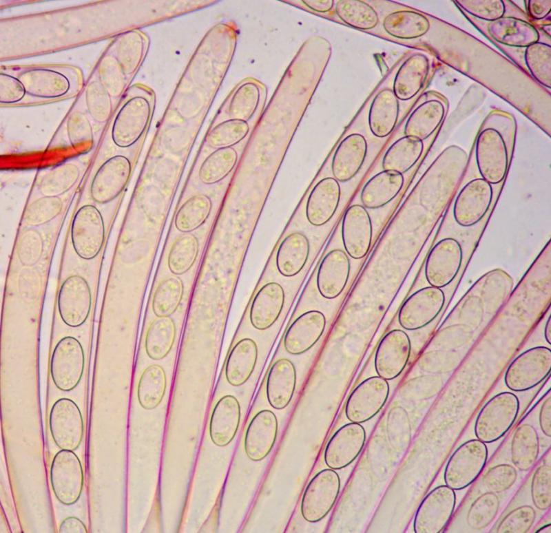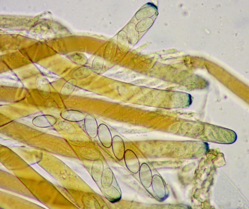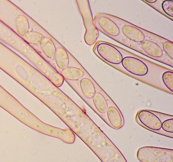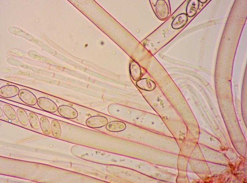 Apothecia are not small, up to 80mm in diameter. On loam soil in wet place under Corylis. In the field i assumed the species from P.varia/P.repanda complex, but microscopy brought a surprise - ornamented (finely punctate with some interconnects) spores. Now I don't understand at all what kind of species it is and I ask for help identifying it.