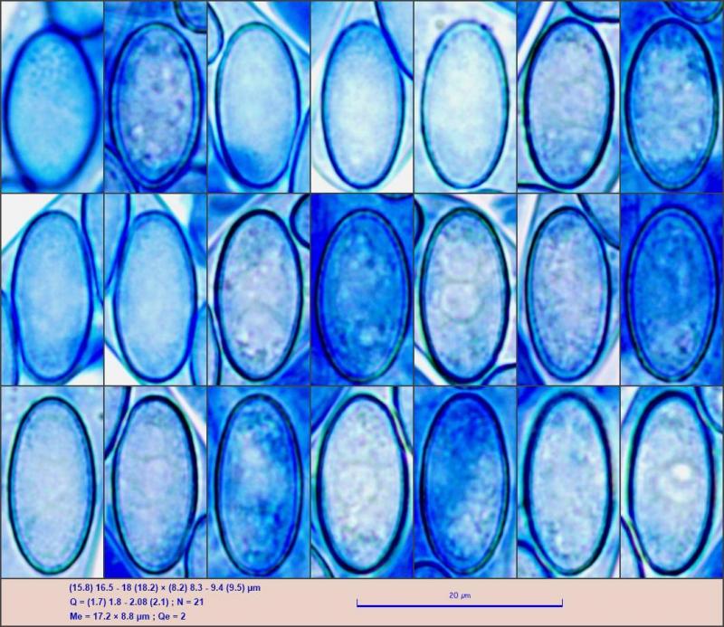 Another interesting character of this species is the presence of bipolar spore granules (see your pics 7 to 9). Species of the varia complex do not show such granules.