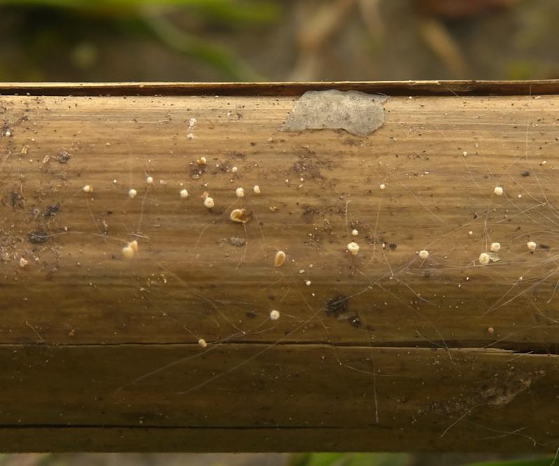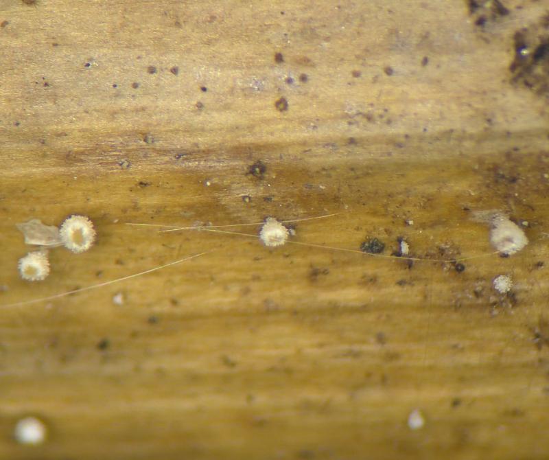 These 0.5 mm diam. acervuli were breaking through