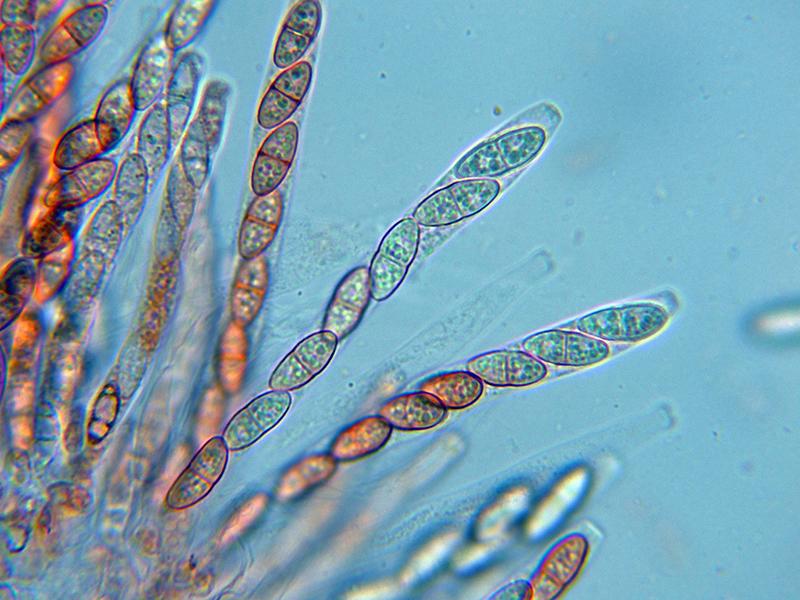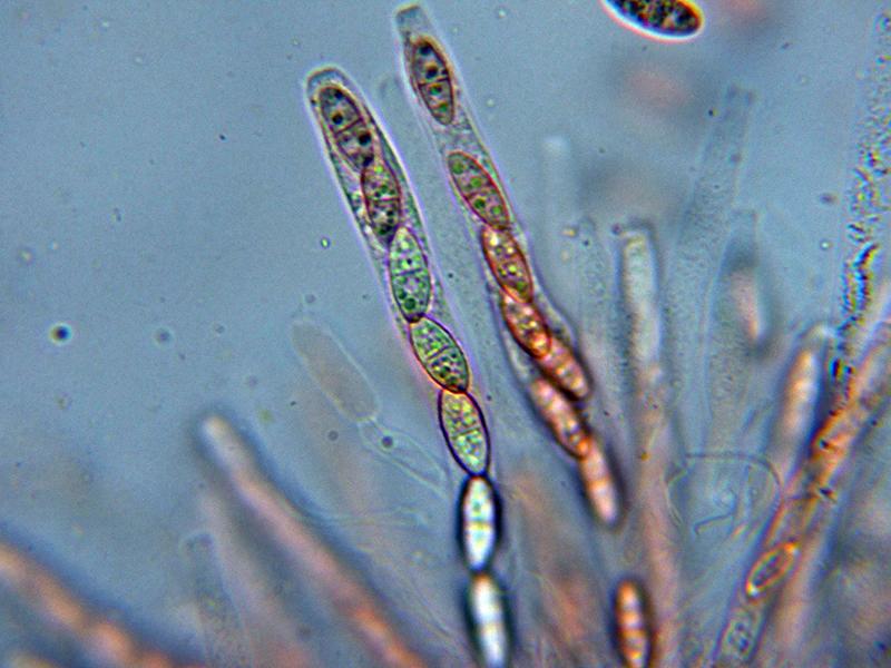 Ascos octospóricos, uniseriados con una longitud de entre 100 y 115 micras y una anchura de entre 6,2 a 7,9 micras.
