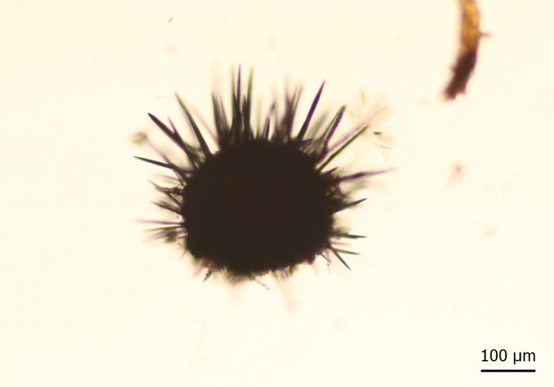 Black, globose, setose fruit bodies (that one in the photo is 280 µm broad).