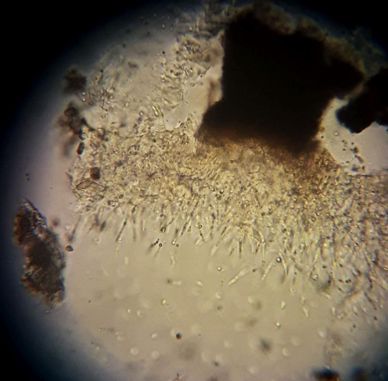 These 0.5 mm diam. acervuli were breaking through