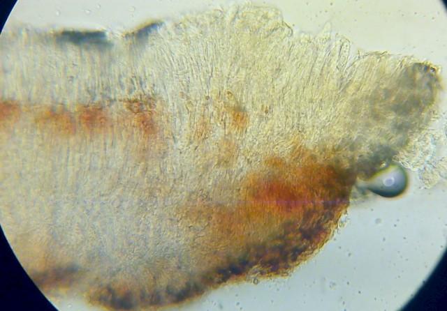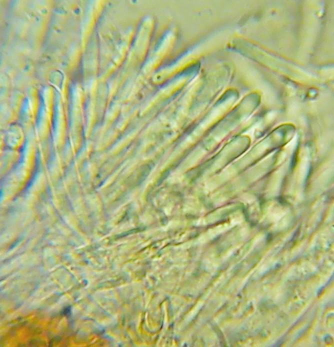 This is a Calycina of the C. heterospora group. In several collections of this group the apos turned deep red. For the entire complex I have so far no published name.