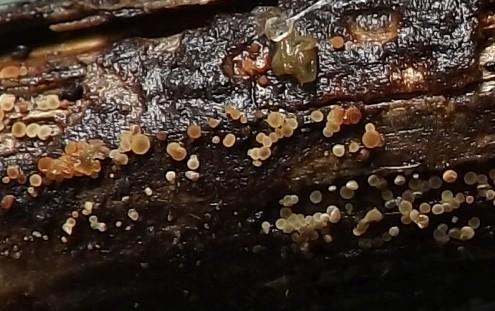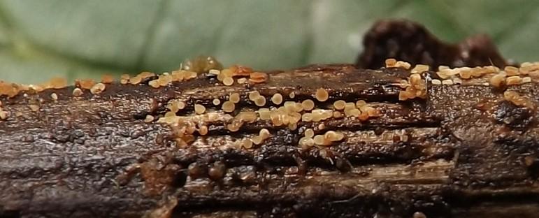 Small ascomata on wood, probably Corylus?
