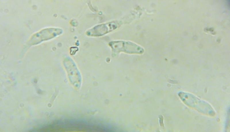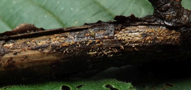 These 0.5 mm diam. acervuli were breaking through