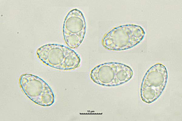 The spores measure 17.8 - 19.6 × 10.2 - 10.8 µm.