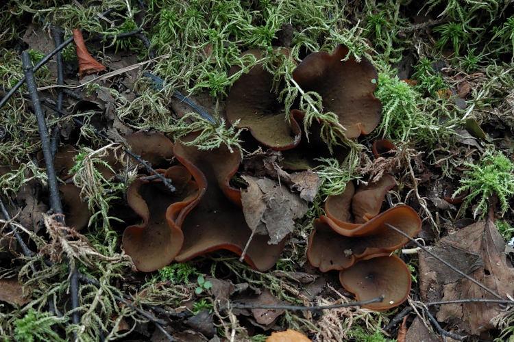 I forgot to mention that the apos are fairly large, up to ca. 5 cm wide (the size for L. limnaea on ascomycete.org is 5–15 mm). There was also a good amount of white mycelium on the underside of the apos.