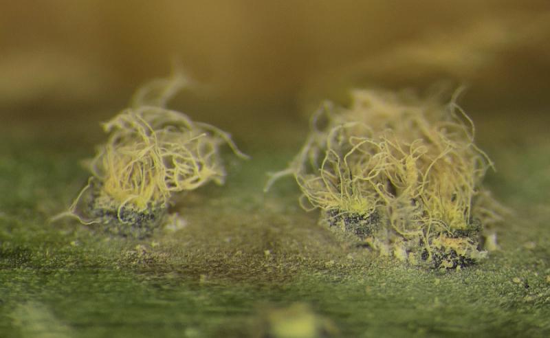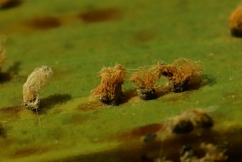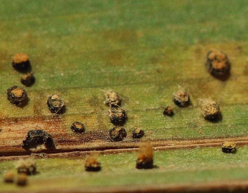These 0.5 mm diam. acervuli were breaking through