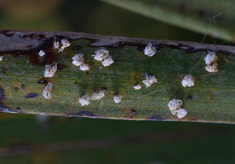 I have found this wonderful species on Phoenix cf dactylifera (or canariensis - specimen was not mature) dotted with white growths over the pinnae. A closer look with magnification revealed Graphiola sp. and on palms I just ascribed the fungus as Graphiola phoenicis. If you have different ideas let me know. Specimens collected for any further examinations.Location Gozo, Ma lta