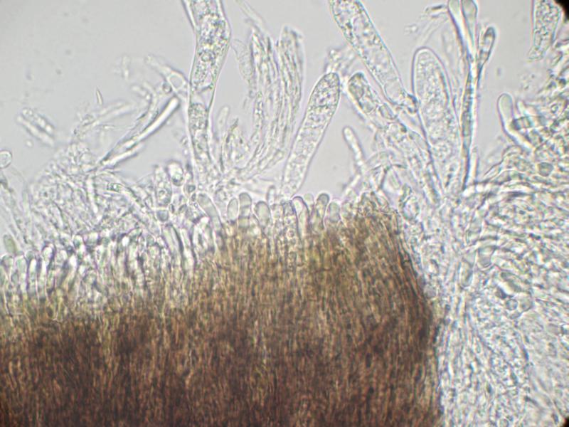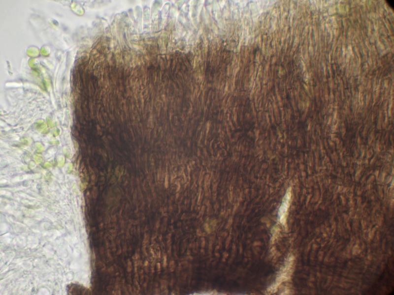 Excipulum a dark brown textura oblita, with marginal cells resembling small paraphyses.