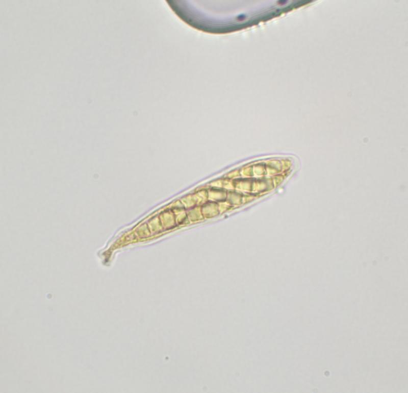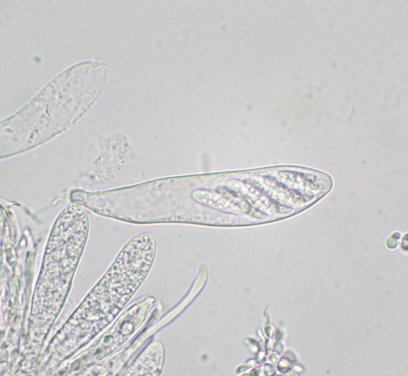 Ascospores ellipsoid-fusiform to weakly obovoid; hyaline; 3-septate; with numerous small slightly refractive OBs; (11-)12-15 x 4-5 µm.