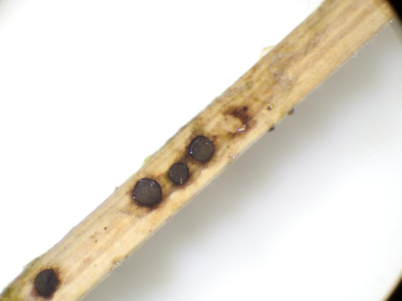 Apothecia sessile; dark grey hymenium & black exterior; ca 300 µm diam.