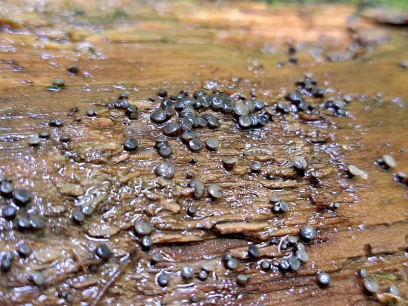 Hello,today I found on a submersed Picea stem this grey discomycete. The apothecia were partly submerse and partly out of the water. Macroscopically the cushion-like apothecia on a distinct small stipe are reminded of a Vibrissea (Apostemidium), but microscopically it turned out to be rather a Mollisia, inspite of the stem.