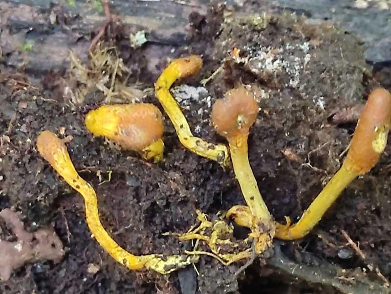 Castillo JosebaAyer encontramos entre la madera podrida y materia organica en un tocon de abeto estos Cordyceps? no pudimos encontrar a lo que parasitaban, si hipogeo o bicho