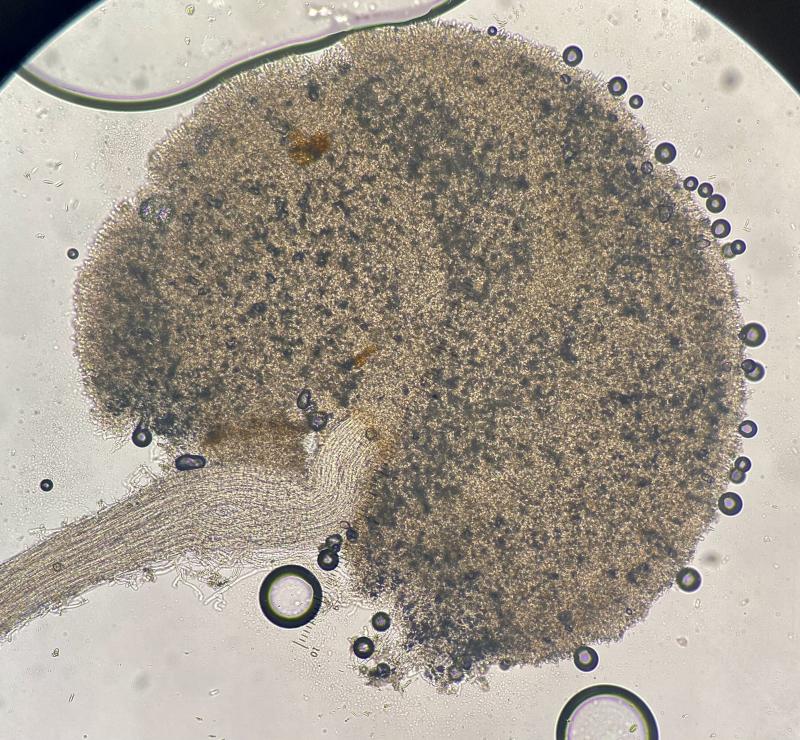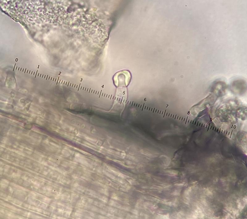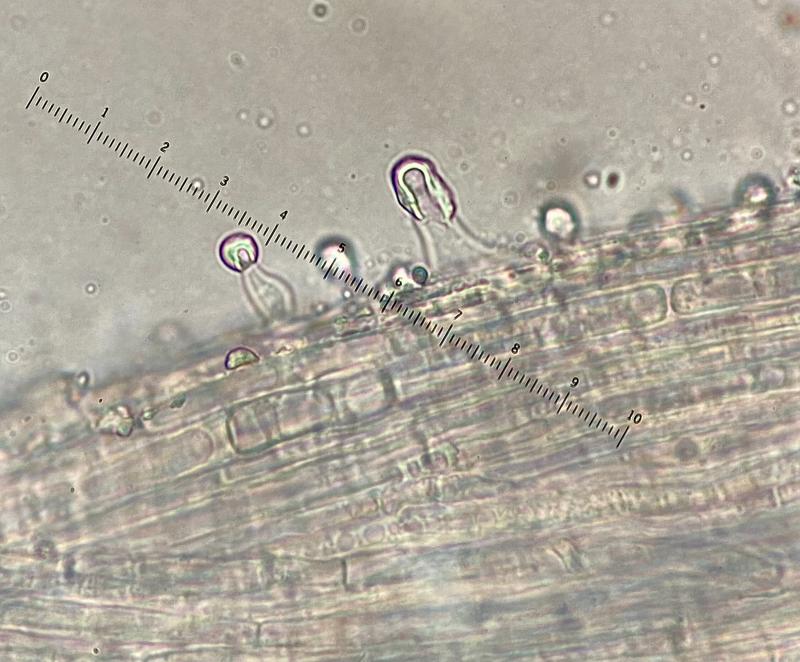 Gloeocystidia? present on stem and cap, capitate with a gel surrounding the tip.