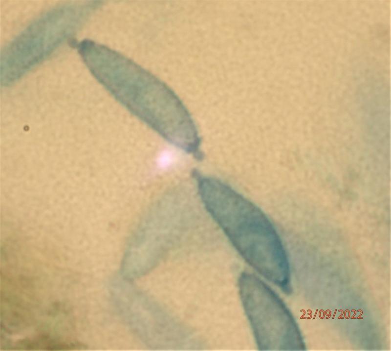 These 0.5 mm diam. acervuli were breaking through