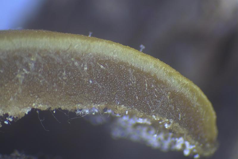 These 0.5 mm diam. acervuli were breaking through