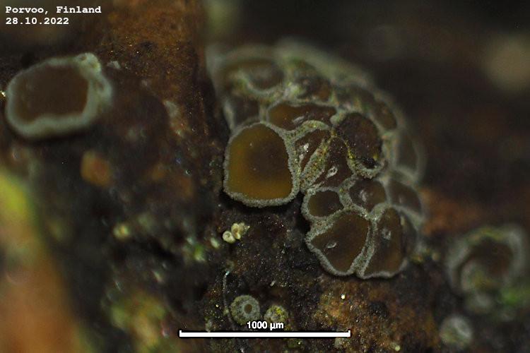 I'm not sure, but I get a feeling that this might be a lichen, rather than a pure ascomycete. Any thoughts?