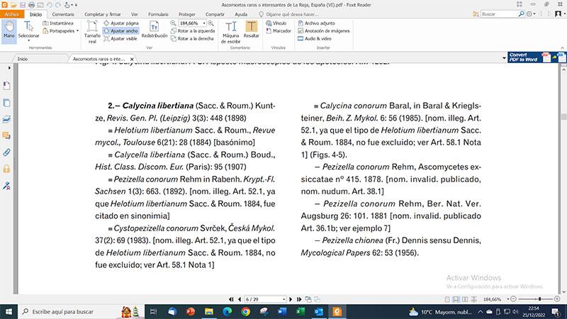 Mirando la pagina de Enrique da Calycina libertiana (Sacc. & Roum.) Kuntze