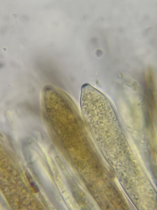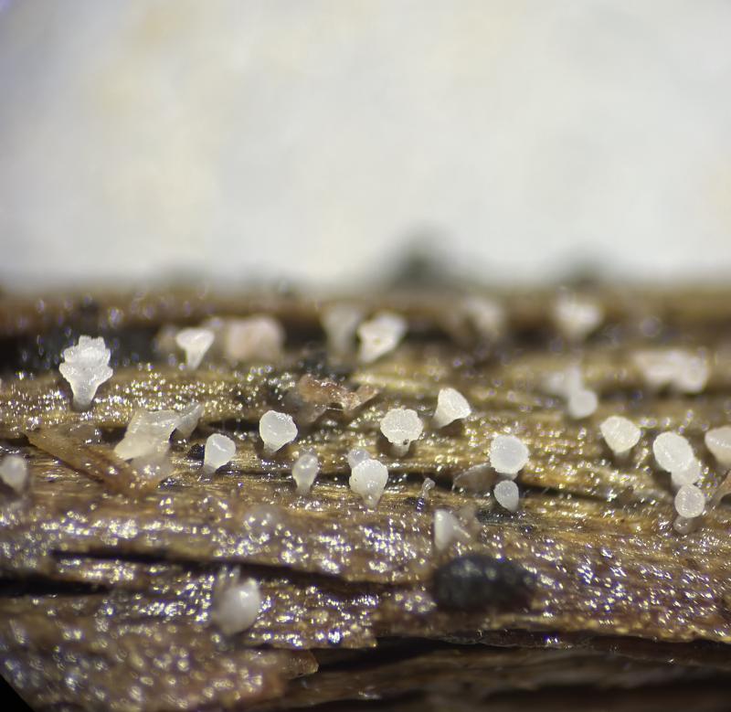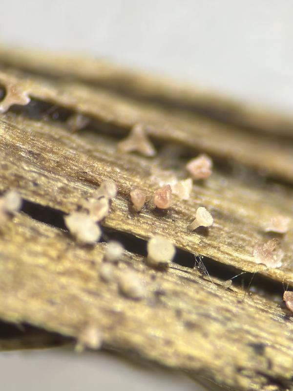 ascomata = around 0.5mm wide, white, become reddish when drying.