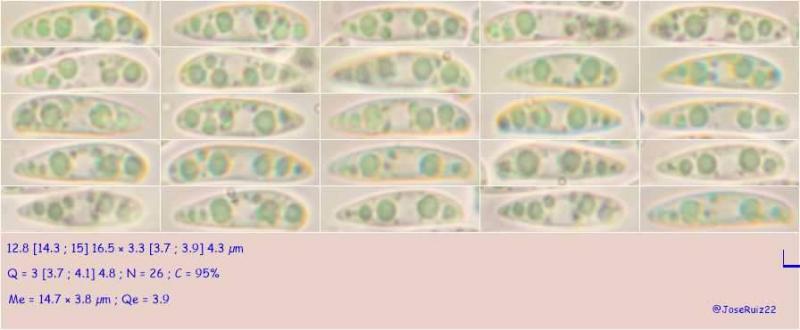 Esporas 12.8 [14.3 ; 15] 16.5 × 3.3 [3.7 ; 3.9] 4.3 µm