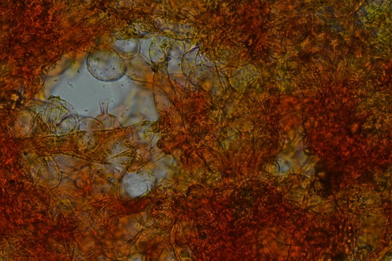 These 0.5 mm diam. acervuli were breaking through