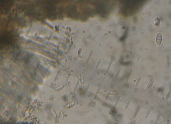 The spores are about 8-10x 3-4 and develop up to 3 septas.