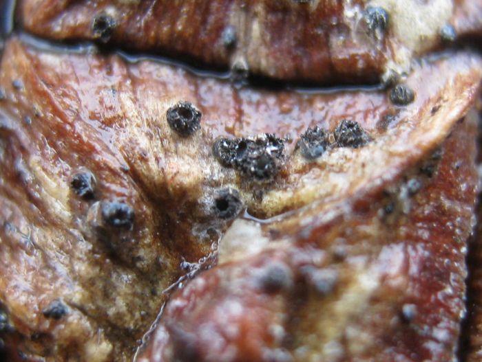 These 0.5 mm diam. acervuli were breaking through