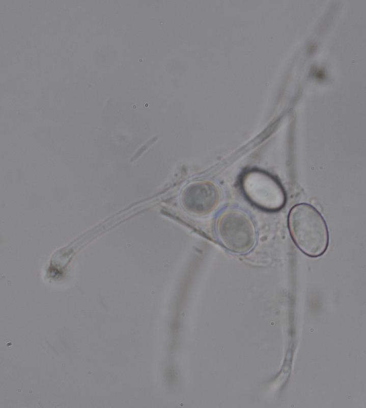 Buenos díasEste Coprotus sobre heces de conejo, que en un primer momento con micro rápida clasifiqué como C. aurora, ahora al ponerme a escribir parece que también se acerca mucho a C. ochraceus y no soy capaz de decidirme por una especie o la otra.