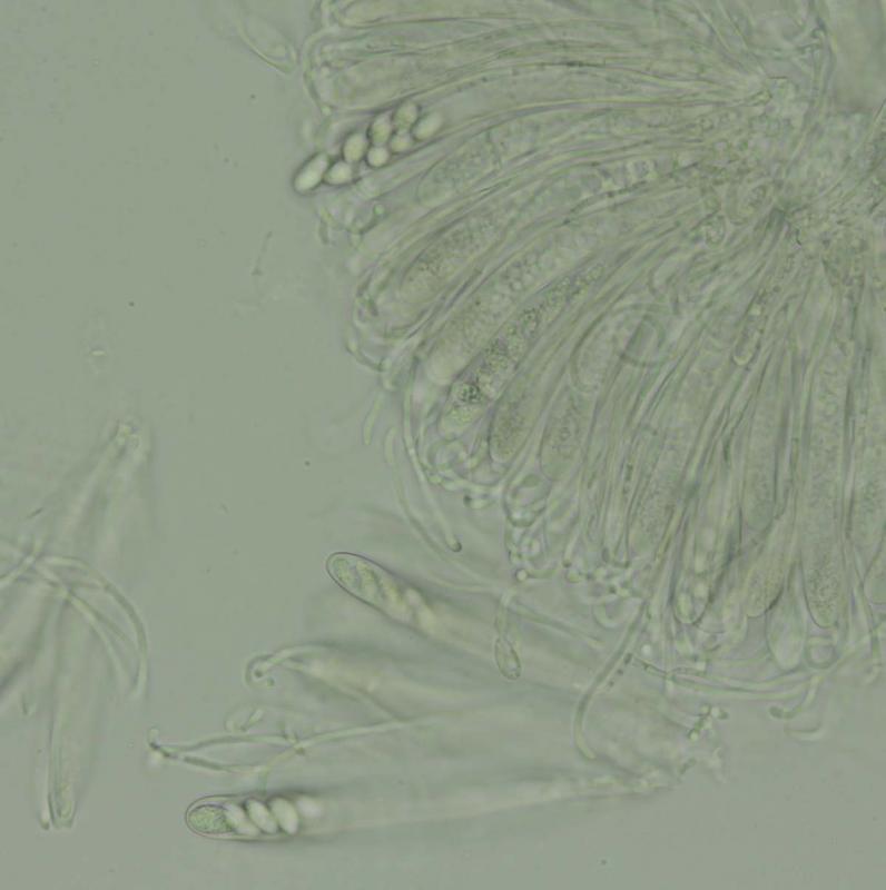 - spores ellipsoid, 10-11 x 5-7 µm, hyaline, smooth, filled with many small LB