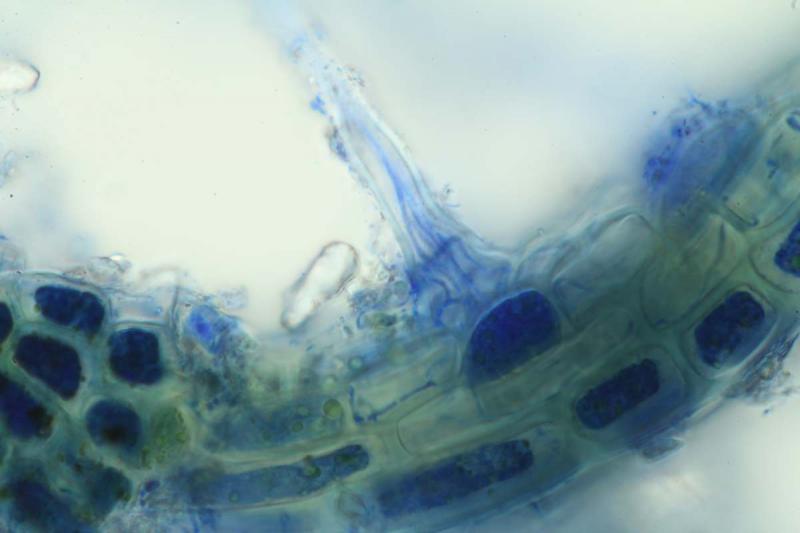 - host Cephaloziella hampeana: hyphae inside rhizoids growing upwards to the base of the rhizoid cell and from there in adjacent stem cells