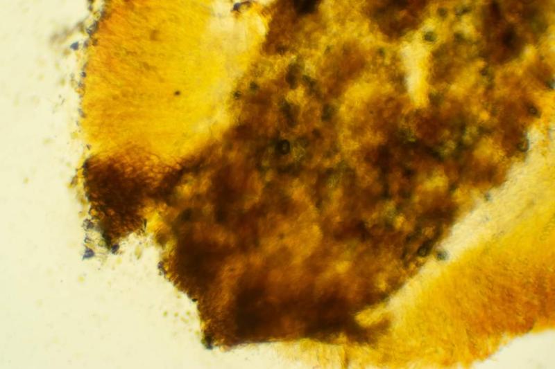 These 0.5 mm diam. acervuli were breaking through