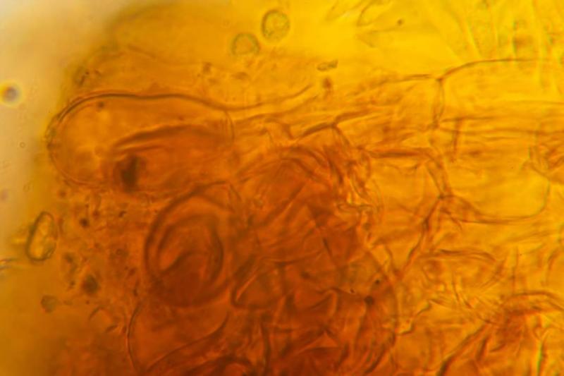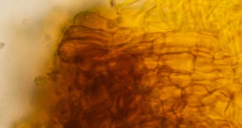 Pelos clavados hasta 17 micras en la parte más ancha,tanto en el excipulo y en el borde.