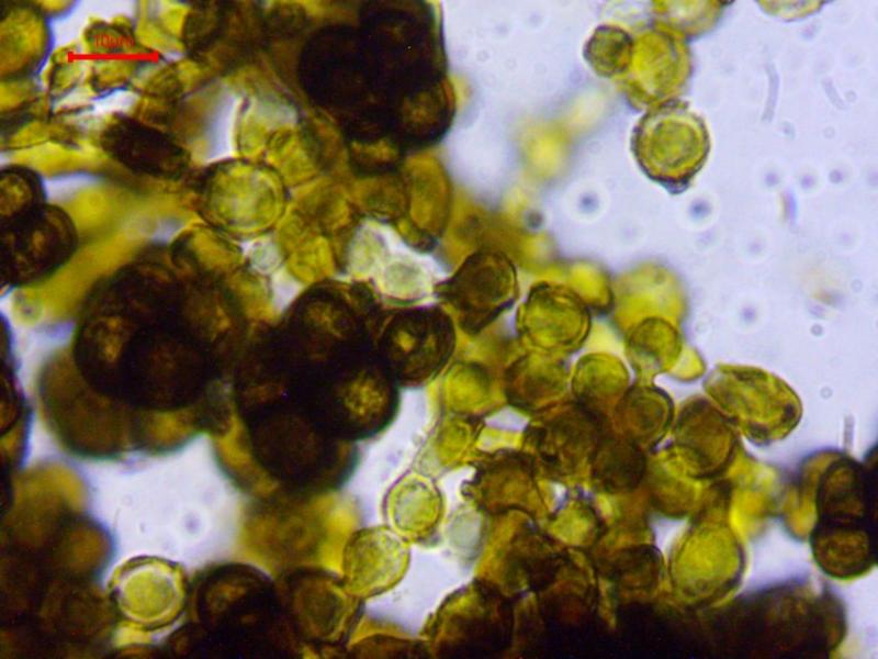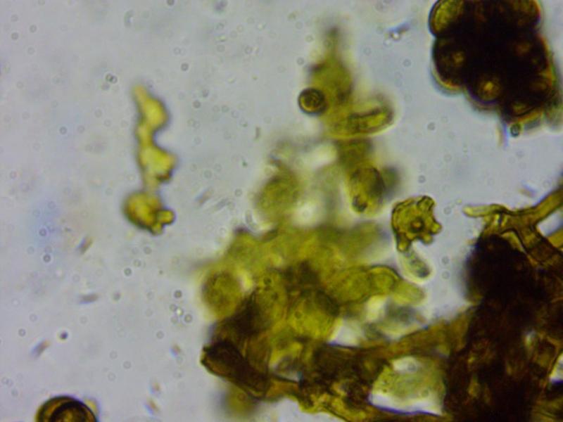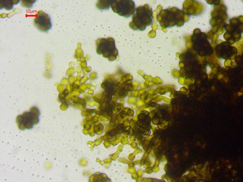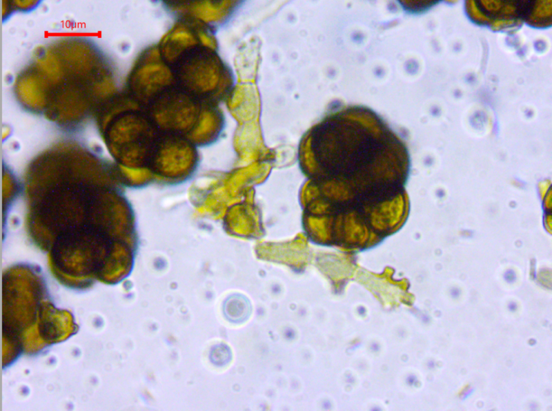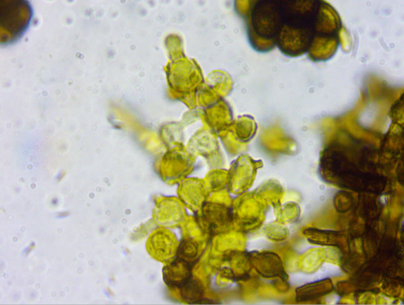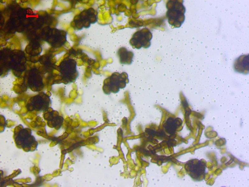 These 0.5 mm diam. acervuli were breaking through