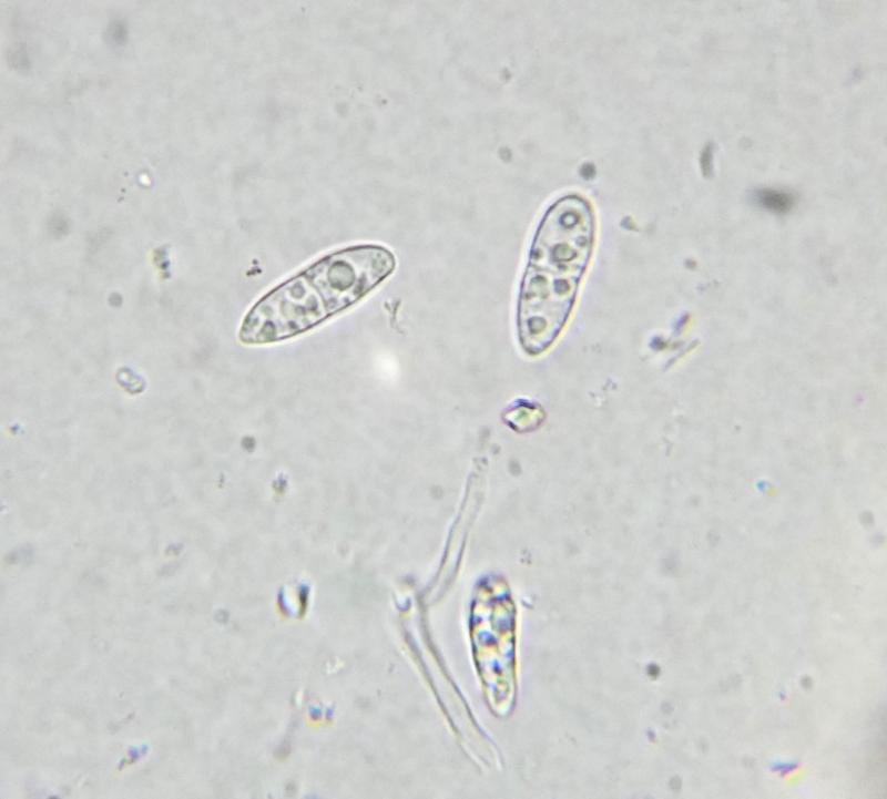 Forgot to mention that the spores eventually become 1-septate, as you can see in one of the images.