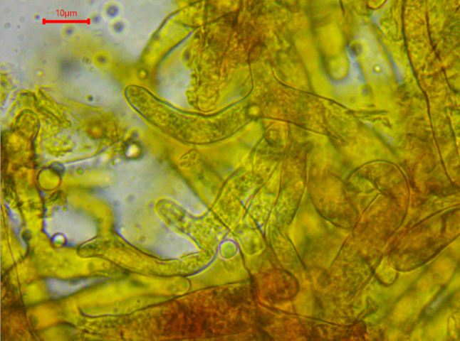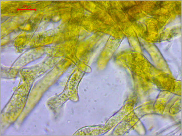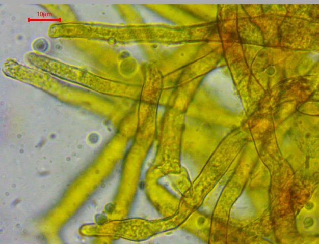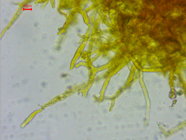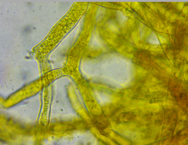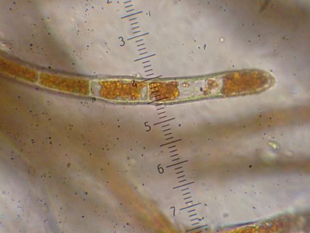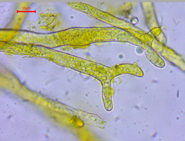 ... on naked red soil under Ceratonia, Olea and other mediterranean bushes, near Tor (Algarve). It does not seem to be an alga - the contents in the cells are too small to be plastids. The filaments are without septa and branching dichotomously. One of my thoughs is a possible Glomeromycota but am quite helpless. Who can help?Yours, Lothar