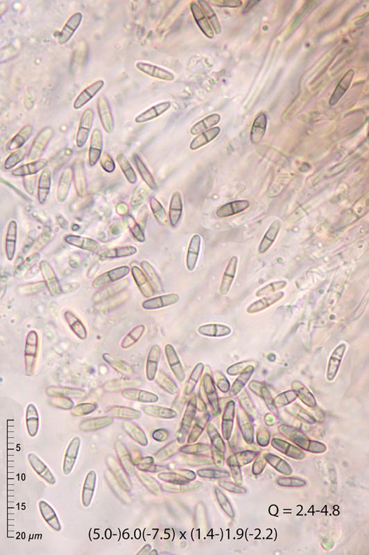 I have tiny immersed or semi-immersed perithecia growing on apothecia of Bactrospora patellariodes in the Balearic Islands (Spain). The asci are polysporic and the mature spores are olive-brown with one transverse septum (exceptionally two). No conspicuous hamathecium. I think in the Muellerella lichenicola complex, but the spores are narrower than usually given to M. lichenicola st. sensu. Or perhaps a Bellemerella species?